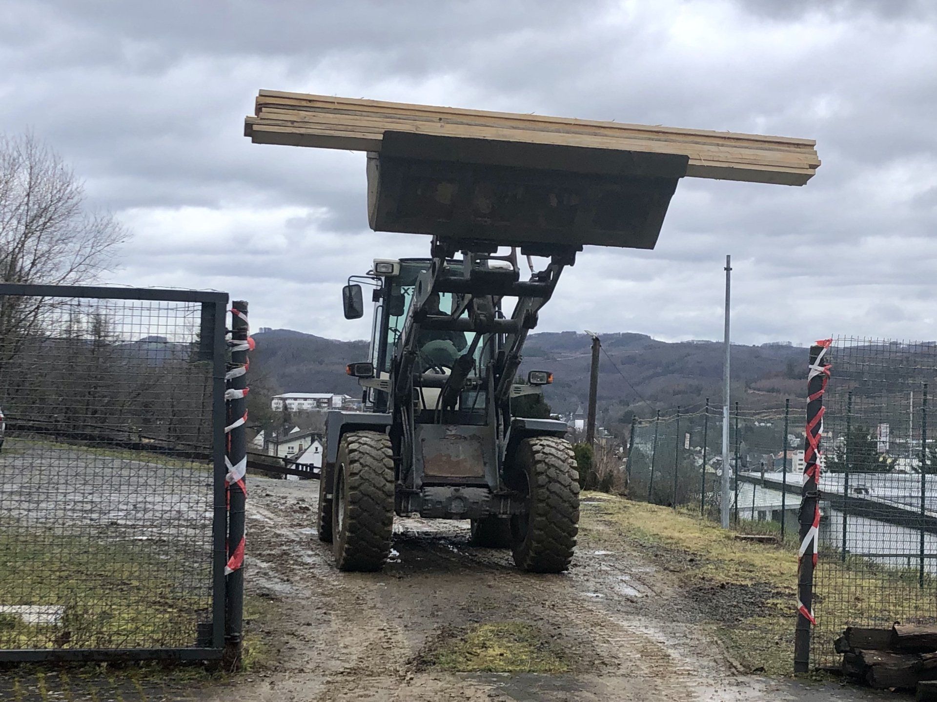 Draußen hat Wolfgang unglaubliche Erdbewegungen mit dem Radlader vollbracht und auf den neu geschaffenen Erdwall haben Mario, Leo, Wilfried und Sascha einen doppelseitigen Holzzaun gebaut, der definitiv keine Kugel durchlässt!